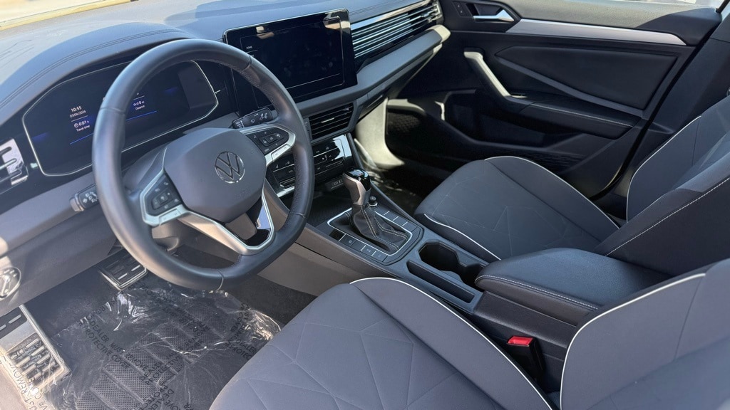 2025 Volkswagen Jetta 1.5T Sport CERTIFIED PRE-OWNED, CLEAN CARFAX, NO ACCIDENTS, ONE OWNER, STILL UNDER FACTORY WARRANTY, Volkswagen Certified Pre-Owned Certified, Grigio/Titan Black Cloth, Active Blind Spot Monitor, Air Conditioning, Auto-dimming Rear-View mirror, Automatic temperature control, Brake assist, Cloth Seat Trim, Delay-off headlights, Driver door bin, Driver vanity mirror, Exterior Parking Camera Rear, Front dual zone A/C, Fully automatic headlights, Heated door mirrors, Heated front seats, Leather Shift Knob, Leather steering wheel, Occupant sensing airbag, Panic alarm, Power door mirrors, Radio: MIB3 Composition Color w/8" Touchscreen, Rain sensing wipers, Rear window defroster, Remote keyless entry, Split folding rear seat, Variably intermittent wipers, 4 Speakers, 4-Wheel Disc Brakes, ABS brakes, Alloy wheels, Bumpers: body-color, Dual front impact airbags, Dual front side impact airbags, Electronic Stability Control, Emergency communication system: VW Car-Net Safe & Secure 5-year, Front anti-roll bar, Front Bucket Seats, Front Center Armrest, Front wheel independent suspension, Heated Front Seats, Illuminated entry, Low tire pressure warning, Outside temperature display, Overhead airbag, Overhead console, Passenger door bin, Passenger vanity mirror, Power steering, Power windows, Radio data system, Rear anti-roll bar, Rear reading lights, Rear seat center armrest, Speed control, Speed-sensing steering, Steering wheel mounted audio controls, Tachometer, Telescoping steering wheel, Tilt steering wheel, Traction control, Trip computer, Wheels: 17" 2-Tone Machined Alloy, SPECIAL FINANCING AVAILABLE, NON SMOKER, Grigio/Titan Black Cloth, Active Blind Spot Monitor, Air Conditioning, Auto-dimming Rear-View mirror, Automatic temperature control, Brake assist, Cloth Seat Trim, Delay-off headlights, Driver door bin, Driver vanity mirror, Exterior Parking Camera Rear, Front dual zone A/C, Fully automatic headlights, Heated door mirrors, Heated front seats, Leather Shift Knob, Leather steering wheel, Occupant sensing airbag, Panic alarm, Power door mirrors, Radio: MIB3 Composition Color w/8" Touchscreen, Rain sensing wipers, Rear window defroster, Remote keyless entry, Split folding rear seat, Variably intermittent wipers.