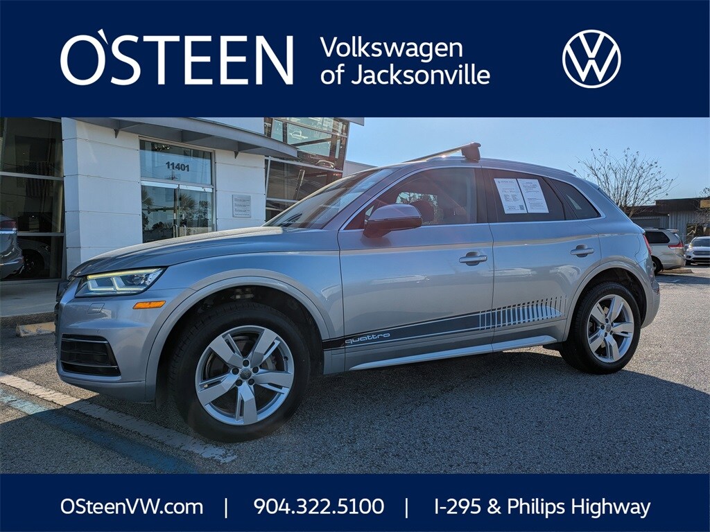 2018 Audi Q5 2.0T quattro quattro Gray Leather, 10 Speakers, 3-Step Heated Front Seats, 3-Step Heated Rear Seats, 4-Wheel Disc Brakes, 5.302 Axle Ratio, 8-Way Power Front Bucket Seats, ABS brakes, Air Conditioning, All Weather Floor Mats, Alloy wheels, Aluminum Rhombus Inlays, AM/FM radio: SiriusXM, Audi Beam-Rings, Audi Guard Protection Kit, Audi Side Assist w/Pre Sense Rear, Audi smartphone interface (Apple CarPlay/Android Auto), Auto-dimming door mirrors, Auto-dimming Rear-View mirror, Automatic temperature control, Black Privacy Trunk Cover, Brake assist, Bumpers: body-color, Cargo Mat, Cold Weather Package, Compass, Delay-off headlights, Driver door bin, Driver vanity mirror, Dual front impact airbags, Dual front side impact airbags, DVD-Audio, Electronic Stability Control, Emergency communication system: Audi connect CARE, Exterior Parking Camera Rear, Four wheel independent suspension, Front anti-roll bar, Front Bucket Seats, Front Center Armrest, Front dual zone A/C, Front fog lights, Front reading lights, Full LED Headlights, Garage door transmitter: HomeLink, Genuine wood console insert, Genuine wood dashboard insert, Genuine wood door panel insert, Heated 3-Spoke Multifunction Steering Wheel, Heated door mirrors, High Gloss Window Surrounds, High intensity discharge headlights: Xenon plus, Illuminated entry, Leather Seating Surfaces, Leather Shift Knob, Leather steering wheel, Low tire pressure warning, Memory seat, Navigation System, Occupant sensing airbag, Outside temperature display, Overhead airbag, Overhead console, Panic alarm, Panoramic Sunroof w/Tilt/Slide & Power Sunshade, Parking System Plus (Front/Rear Acoustic Sensors), Passenger door bin, Passenger vanity mirror, Power door mirrors, Power driver seat, Power Liftgate, Power passenger seat, Power steering, Power windows, Premium Plus Package, Radio data system, Radio: MMI Navigation Plus System, Rain sensing wipers, Rear air conditioning, Rear anti-roll bar, Rear Cross Traffic Assist, Rear fog lights, Rear reading lights, Rear seat center armrest, Rear window defroster, Rear window wiper, Remote keyless entry, Roof rack, Security system, SiriusXM All Access Service, Speed control, Speed-sensing steering, Speed-Sensitive Wipers, Split folding rear seat, Spoiler, Stainless Steel Door Sills, Steering wheel mounted audio controls, Tachometer, Telescoping steering wheel, Tilt steering wheel, Traction control, Trip computer, Turn signal indicator mirrors, Variably intermittent wipers, Vehicle Exit Assist, Wheels: 8" x 18" 5-Double-Spoke Dynamic Design, Wheels: 8" x 19" 5-Arm-Wing Design Wheel, Gray Leather.