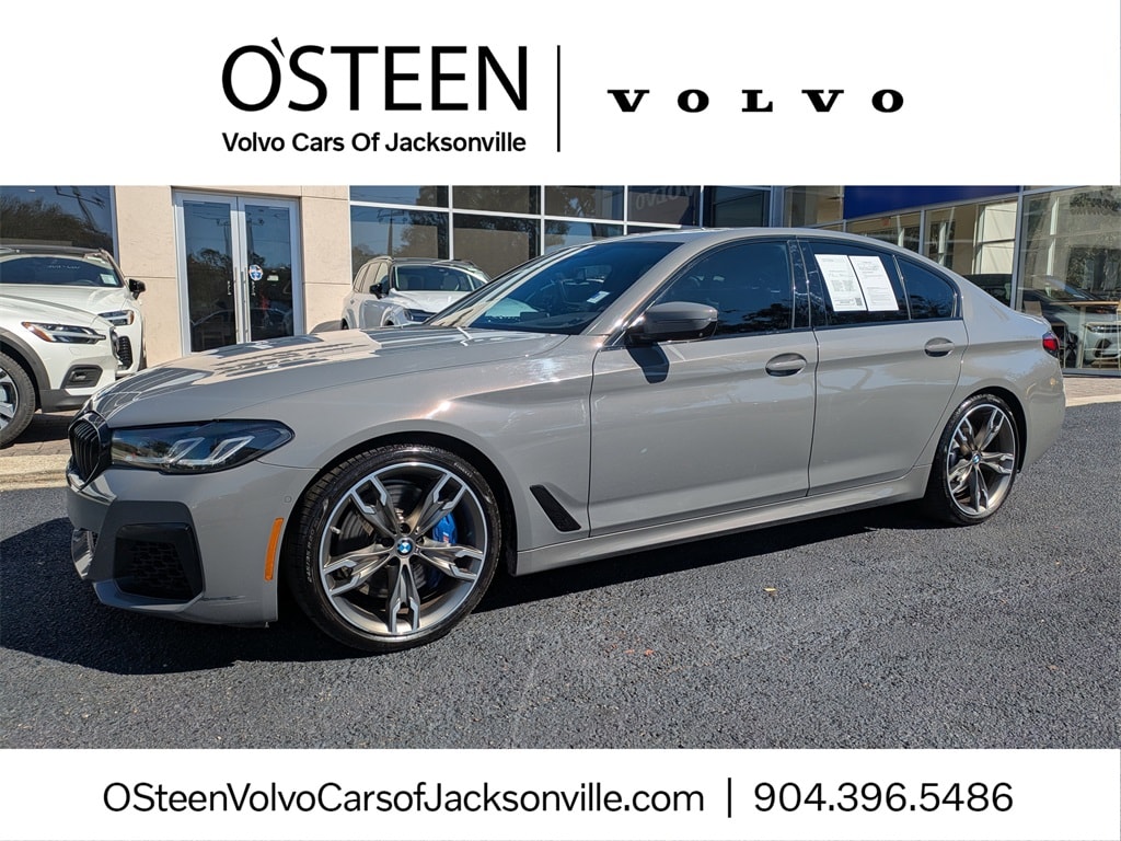 2022 BMW 5 Series M550i xDrive CLEAN CARFAX, NO ACCIDENTS, ONE OWNER, 5 Series M550i xDrive, 4.4L V8 Twin Turbocharged, AWD, Bernina Gray Amber Effect Metallic, Black w/Nappa Leather Upholstery, Active Driving Assistant Pro, Active Park Distance Control, Ceramic Controls, Drive Recorder, Driving Assistance Professional Package, Executive Package, Extended Shadowline Trim, Extended Traffic Jam Assistant, Gesture Control, Head-Up Display, M Shadowline Lights, Parking Assistance Package, Parking Assistant Plus, Power Rear Sunshade, Rear-View Camera, Shadowline Package, Surround View w/3D View, 16 Speakers, 4-Wheel Disc Brakes, ABS brakes, Adaptive suspension, Air Conditioning, Alloy wheels, AM/FM radio: SiriusXM with 360L, Apple CarPlay & Android Auto Compatibility, Auto High-beam Headlights, Auto tilt-away steering wheel, Auto-dimming door mirrors, Auto-dimming Rear-View mirror, Automatic temperature control, BMW Assist eCall, BMW TeleServices, Brake assist, Bumpers: body-color, Connected Package Pro, ConnectedDrive Services, Dakota Leather Upholstery, Delay-off headlights, Driver door bin, Driver vanity mirror, Dual front impact airbags, Dual front side impact airbags, Electronic Stability Control, Emergency communication system: BMW Assist eCall, Exterior Parking Camera Rear, Four wheel independent suspension, Front & Rear Heated Seats, Front anti-roll bar, Front Bucket Seats, Front Center Armrest, Front dual zone A/C, Front reading lights, Front Ventilated Seats, Fully automatic headlights, Garage door transmitter, Gray Poplar Wood Trim, harman/kardon Surround Sound System, harman/kardon® Speakers, Heated door mirrors, Heated Front Seats, Heated front seats, Heated Steering Wheel, Illuminated entry, Leather Shift Knob, Leather steering wheel, Live Cockpit Pro, Low tire pressure warning, Memory seat, Multi-Contour Seats, Navigation System, Occupant sensing airbag, Outside temperature display, Overhead airbag, Panic alarm, Passenger door bin, Passenger vanity mirror, Power adjustable front head restraints, Power door mirrors, Power driver seat, Power Front Seats, Power moonroof, Power passenger seat, Power steering, Power windows, Radio data system, Radio: AM/FM Audio System, Rain sensing wipers, Rear anti-roll bar, Rear reading lights, Rear seat center armrest, Rear window defroster, Remote keyless entry, Remote Services, Security system, SiriusXM w/360L, Speed control, Speed-sensing steering, Speed-Sensitive Wipers, Split folding rear seat, Spoiler, Sport steering wheel, Steering wheel memory, Steering wheel mounted audio controls, Tachometer, Telescoping steering wheel, Tilt steering wheel, Traction control, Trip computer, Turn signal indicator mirrors, Variably intermittent wipers, Wheels: 19" x 8" Fr & 19" x 9" Rr M Y-Spoke Bi-Color, Wheels: 20" x 8" Fr & 20" x 9" Rr M Double-Spoke, Wireless Charging, NAVIGATION, NON SMOKE, 5 Series M550i xDrive, 4.4L V8 Twin Turbocharged, AWD, Bernina Gray Amber Effect Metallic, Black w/Nappa Leather Upholstery, Active Driving Assistant Pro, Active Park Distance Control, Ceramic Controls, Drive Recorder, Driving Assistance Professional Package, Executive Package, Extended Shadowline Trim, Extended Traffic Jam Assistant, Gesture Control, Head-Up Display, M Shadowline Lights, Parking Assistance Package, Parking Assistant Plus, Power Rear Sunshade, Rear-View Camera, Shadowline Package, Surround View w/3D View.