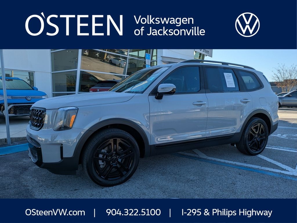 2025 Kia Telluride SX-Prestige X-Line CLEAN CARFAX, NO ACCIDENTS, ONE OWNER, STILL UNDER FACTORY WARRANTY, Telluride SX-Prestige X-Line, 4D Sport Utility, 3.8L V6 DOHC, 8-Speed Automatic, AWD, Wolf Gray, 10 Speakers, 3rd row seats: split-bench, AM/FM radio: SiriusXM, Apple CarPlay & Android Auto, Auto High-beam Headlights, Delay-off headlights, Exterior Parking Camera Rear, Four wheel independent suspension, Front fog lights, Fully automatic headlights, harman/kardon® Speakers, Heated & Ventilated Front Bucket Seats, Heated door mirrors, Heated front seats, Memory seat, Navigation System, Power driver seat, Power Liftgate, Power moonroof, Rear window wiper, Reclining 3rd row seat, Remote keyless entry, Turn signal indicator mirrors, Variably intermittent wipers, Ventilated front seats, 4-Wheel Disc Brakes, ABS brakes, Air Conditioning, Alloy wheels, Auto-dimming Rear-View mirror, Auto-leveling suspension, Automatic temperature control, Brake assist, Bumpers: body-color, Carpet Cargo Mat w/Seatback Protection, Carpeted Floor Mats, Compass, Driver door bin, Driver vanity mirror, Dual front impact airbags, Dual front side impact airbags, Electronic Stability Control, Emergency communication system: 911 Connect, Front anti-roll bar, Front Bucket Seats, Front Center Armrest, Front dual zone A/C, Front reading lights, Garage door transmitter: HomeLink, Hybrid Cargo Net, Illuminated entry, Knee airbag, Leather Shift Knob, Leather steering wheel, Low tire pressure warning, Occupant sensing airbag, Outside temperature display, Overhead airbag, Overhead console, Panic alarm, Passenger door bin, Passenger vanity mirror, Power door mirrors, Power passenger seat, Power steering, Power windows, Radio data system, Radio: AM/FM Harman Kardon Audio System, Rear air conditioning, Rear anti-roll bar, Rear audio controls, Rear reading lights, Rear side impact airbag, Rear window defroster, Security system, Speed control, Speed-sensing steering, Split folding rear seat, Spoiler, Steering wheel mounted audio controls, Tachometer, Telescoping steering wheel, Tilt steering wheel, Traction control, Trip computer, SPECIAL FINANCING AVAILABLE, LOCAL TRADE, Telluride SX-Prestige X-Line, 4D Sport Utility, 3.8L V6 DOHC, 8-Speed Automatic, AWD, Wolf Gray, 10 Speakers, 3rd row seats: split-bench, AM/FM radio: SiriusXM, Apple CarPlay & Android Auto, Auto High-beam Headlights, Delay-off headlights, Exterior Parking Camera Rear, Four wheel independent suspension, Front fog lights, Fully automatic headlights, harman/kardon® Speakers, Heated & Ventilated Front Bucket Seats, Heated door mirrors, Heated front seats, Memory seat, Navigation System, Power driver seat, Power Liftgate, Power moonroof, Rear window wiper, Reclining 3rd row seat, Remote keyless entry, Turn signal indicator mirrors, Variably intermittent wipers, Ventilated front seats.