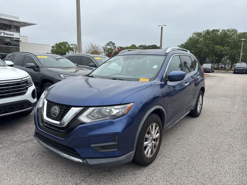 2019 Nissan Rogue SV 17" Aluminum Alloy Wheels, 4-Wheel Disc Brakes, 6 Speakers, 6.386 Axle Ratio, ABS brakes, Air Conditioning, Alloy wheels, AM/FM radio: SiriusXM, Anti-whiplash front head restraints, Auto High-beam Headlights, Automatic temperature control, Blind Spot Warning, Brake assist, Bumpers: body-color, CD player, Cloth Seat Trim, Delay-off headlights, Driver door bin, Driver vanity mirror, Dual front impact airbags, Dual front side impact airbags, Electronic Stability Control, Four wheel independent suspension, Front anti-roll bar, Front Bucket Seats, Front Center Armrest w/Storage, Front dual zone A/C, Front reading lights, Fully automatic headlights, Heated door mirrors, Heated Front Bucket Seats, Heated front seats, Illuminated entry, Leather Shift Knob, Low tire pressure warning, NissanConnect featuring Apple CarPlay and Android Auto, Occupant sensing airbag, Outside temperature display, Overhead airbag, Overhead console, Panic alarm, Passenger door bin, Passenger vanity mirror, Power door mirrors, Power driver seat, Power Liftgate, Power steering, Power windows, Radio data system, Radio: AM/FM/CD/AUX, Radio: AM/FM/CD/AUX NissanConnect w/Navigation, Rear anti-roll bar, Rear Parking Sensors, Rear seat center armrest, Rear window defroster, Rear window wiper, Remote keyless entry, Roof rack: rails only, Security system, Speed control, Speed-sensing steering, Split folding rear seat, Spoiler, Steering wheel mounted audio controls, Tachometer, Telescoping steering wheel, Tilt steering wheel, Traction control, Trip computer, Turn signal indicator mirrors, Variably intermittent wipers.