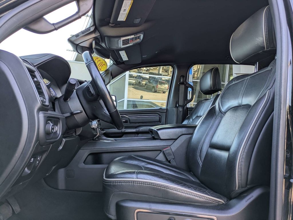 2022 Ram 1500 Limited 10 Speakers, 3.21 Rear Axle Ratio, 4 Way Front Headrests, 4-Wheel Disc Brakes, 48V Belt Starter Generator, ABS brakes, Active Noise Control System, Adjustable pedals, Air Conditioning, Alloy wheels, AM/FM radio: SiriusXM with 360L, Apple CarPlay/Android Auto, Audio memory, Auto High-beam Headlights, Auto-dimming door mirrors, Auto-Dimming Exterior Driver Mirror, Auto-Dimming Exterior Passenger Mirror, Auto-dimming Rear-View mirror, Auto-leveling suspension, Automatic temperature control, Bodyside moldings, Brake assist, Bucket Seats, Bumpers: chrome, Chrome Exterior Mirrors, Compass, Convex Wide-Angle Mirror Insert, Delay-off headlights, Delete Spray In Bedliner, Driver door bin, Driver Seat Memory, Driver vanity mirror, Dual front impact airbags, Dual front side impact airbags, Dual Rear Exhaust w/Bright Tips, Electronic Stability Control, Exterior Mirrors Courtesy Lamps, Exterior Mirrors w/Heating Element, Exterior Mirrors w/Memory, Exterior Mirrors w/Supplemental Signals, Front anti-roll bar, Front Bucket Seats, Front Center Armrest w/Storage, Front dual zone A/C, Front fog lights, Front License Plate Bracket, Front reading lights, Front Seat Back Map Pockets, Front wheel independent suspension, Full Length Premium Floor Console, Fully automatic headlights, Garage door transmitter, Genuine wood console insert, Genuine wood dashboard insert, Genuine wood door panel insert, Heated door mirrors, Heated Front Seats, Heated front seats, Heated rear seats, Heated Second Row Seats, Heated Steering Wheel, Heated steering wheel, Heavy-Duty Engine Cooling, HEMI Badge, Illuminated entry, Leather steering wheel, Low tire pressure warning, Manufacturer's Statement of Origin, Memory seat, Navigation System, Occupant sensing airbag, Outside temperature display, Overhead airbag, Overhead console, Panic alarm, ParkView Rear Back-Up Camera, Passenger door bin, Passenger vanity mirror, Pedal memory, Power 4-Way Driver Lumbar Adjust, Power 4-Way Passenger Lumbar Adjust, Power 8-Way Driver & Passenger Seats, Power door mirrors, Power driver seat, Power passenger seat, Power steering, Power windows, Power-Folding Mirrors, Premium Leather Trimmed Bucket Seats, Quick Order Package 27M Limited, Radio data system, Radio: Uconnect 5 Nav w/12.0" Display, Rain sensing wipers, Rear 60/40 Folding Split Recline Seat, Rear anti-roll bar, Rear seat center armrest, Rear step bumper, Rear window defroster, Remote keyless entry, Security system, Speed control, Split folding rear seat, Steering wheel mounted audio controls, Tachometer, Telescoping steering wheel, Tilt steering wheel, Traction control, Trip computer, Turn signal indicator mirrors, Variably intermittent wipers, Ventilated Front Seats, Ventilated front seats, Voltmeter, Wheels: 20" x 9" Aluminum Painted/Polished, Wheels: 20" x 9" Polished w/Inserts (DISC).