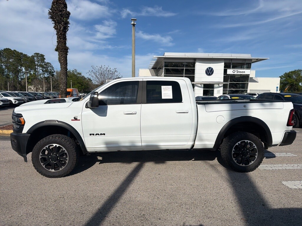 2024 Ram 2500 Rebel ONE OWNER, 2500 Rebel, 4D Crew Cab, Cummins 6.7L I6 Turbodiesel, 4WD, Bright White Clearcoat, Black Leather, 12" Touchscreen Display, 17 Speaker harman/kardon Premium Sound, 220 Amp Alternator, 2nd Row In Floor Storage Bins, 3.73 Axle Ratio, 4 Adjustable Cargo Tie-Down Hooks, 4G LTE Wi-Fi Hot Spot, 4x4 Badge, Adaptive Cruise Control w/Stop, Adaptive Steering System, Adjustable pedals, Air Conditioning, Alexa Built-In, Aluminum Litho Instrument Panel Bezels w/Blk Trim, AM/FM radio: SiriusXM with 360L, Apple CarPlay, Apple CarPlay/Android Auto, Auto Adjust In Reverse Exterior Mirrors, Auto Dim Exterior Mirror, Auto High Beam Headlamp Control, Auto Level Rear Air Suspension, Auto Power-Folding Mirrors, Auto-Dimming Exterior Passenger Mirror, Auto-dimming Rear-View mirror, Automatic temperature control, Bi-Function LED Projector Headlamps, Black Exterior Mirrors, Black Rotary Shifter w/Silver Stripe, Blind Spot & Cross Path Detection, Body Color Door Handles, Cloth Heated Power Bench Seat (DISC), Connected Travel & Traffic Services, Connectivity - US/Canada, Conventional Differential Front Axle, Delay-off headlights, Disassociated Touchscreen Display, Driver door bin, Electric Shift-On-The-Fly Transfer Case, Exterior Mirrors Courtesy Lamps, Exterior Mirrors w/Heating Element, Exterior Mirrors w/Memory, Exterior Mirrors w/Supplemental Signals, Folding Flat Load Floor Storage, For Details, Visit DriveUconnect.com, For More Info, Call 800-643-2112, Forward & Reverse Utility Lights, Front Center Armrest w/Storage, Front Door Accent Lighting, Front dual zone A/C, Front fog lights, Full Speed Forward Collision Warning Plus, Fully automatic headlights, Global Telematics Box Module (TBM), Google Android Auto, GPS Antenna Input, GPS Navigation, HD Radio, Heated door mirrors, Heated front seats, Heated steering wheel, Illuminated entry, Instrument Cluster Theme 2 - Rebel, Integrated Voice Command w/Bluetooth, Lane Keep Assist, Leather Wrapped Grab Handle, LED Dome Lamp w/On/Off Switch, LED Interior Lighting, Level 2 Equipment Group, Limited Slip Rear Differential w/Electronic Lock, Luxury Door Trim Panel (CTH), Mirror Running Lights, MOPAR Front & Rear Rubber Floor Mats, Navigation System, Off-Road Information Pages, Overhead LED Lamps, Painted Semi-Texture Film Instrument Panel Bezels, ParkView Rear Back-Up Camera, Passenger door bin, Power 2-Way Driver Lumbar Adjust, Power Adjust 8-Way Driver Seat, Power Adjust Mirrors, Power Adjustable Convex Aux Mirrors, Power Adjustable Pedals w/Memory, Power door mirrors, Power Heated Fold Telescopic Mirrors w/Memory, Power Telescoping Mirrors, Premium Overhead Console, Quick Order Package 2HR Rebel, Radio: Uconnect 5 Nav w/12.0" Display, Rain sensing wipers, Rain Sensitive Windshield Wipers, RamBox Cargo Management System, Rear Door Accent Lighting, Rear Power Sliding Window, Rear Window Defroster, Rebel Badge, Rebel Instrument Panel Badge, Rebel Suspension, Remote Proximity Keyless Entry, Safety Group, Security Alarm, Selectable Tire Fill Alert, SiriusXM Radio Service, SiriusXM w/360L, Split folding rear seat, Sport Performance Hood, Sun Visors w/Illuminated Vanity Mirrors, Trailer Tow Pages, Truck Bed Cargo Divider, Turn signal indicator mirrors, Universal Garage Door Opener, Variably intermittent wipers, Vendor Painted Cargo Box, Vendor Painted Cargo Box Tracking, Wheels: 20" x 8.0" Black Diamond Cut Aluminum, 2 Way Rear Headrest Seat, 4 Way Front Headrests, 4-Wheel Disc Brakes, 40/20/40 Split Bench Seat, 6 Speakers, ABS brakes, Active Noise Control System, Alloy wheels, Black Wheel Center Hub, Block heater, Brake assist, Compass, Dual front impact airbags, Dual front side impact airbags, Electronic Stability Control, Electronically Controlled Throttle, Front anti-roll bar, Front reading lights, Leather steering wheel, Low tire pressure warning, Occupant sensing airbag, Outside temperature display, Overhead airbag, Overhead consol