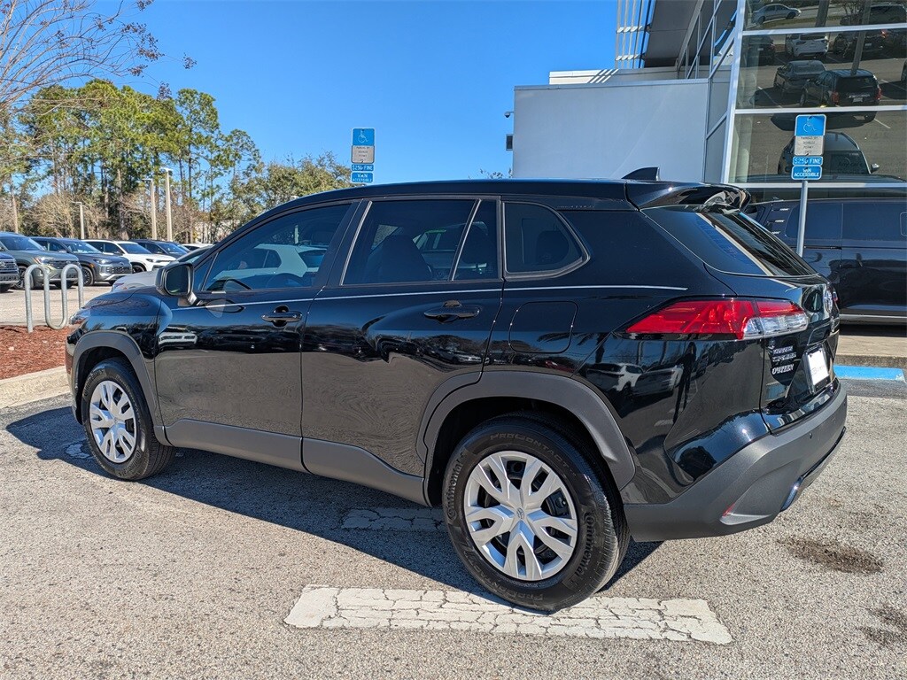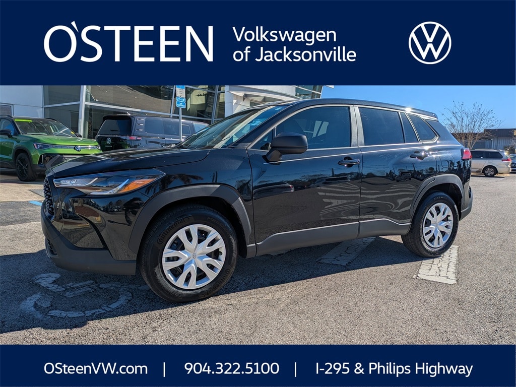2023 Toyota Corolla Cross L Corolla Cross L, 4D Sport Utility, FWD, Jet Black, Black w/Fabric Seat Trim, 4-Wheel Disc Brakes, 4.014 Axle Ratio, 6 Speakers, Air Conditioning, AM/FM radio: SiriusXM, Auto High-beam Headlights, Brake assist, Bumpers: body-color, Delay-off headlights, Driver door bin, Dual front impact airbags, Dual front side impact airbags, Electronic Stability Control, Emergency communication system: Safety Connect (10-year trial), Exterior Parking Camera Rear, Fabric Seat Trim, Front anti-roll bar, Front Bucket Seats, Front Center Armrest, Front reading lights, Front wheel independent suspension, Heated door mirrors, Illuminated entry, Knee airbag, Low tire pressure warning, Occupant sensing airbag, Outside temperature display, Panic alarm, Passenger door bin, Passenger vanity mirror, Power door mirrors, Power steering, Power windows, Radio data system, Radio: 8" Toyota Multimedia, Rear window defroster, Remote keyless entry, Speed control, Spoiler, Steering wheel mounted audio controls, Tachometer, Telescoping steering wheel, Tilt steering wheel, Traction control, Trip computer, Wheels: 17" Steel w/Silver Wheel Covers.
