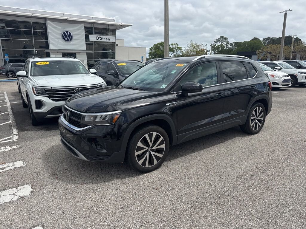 2023 Volkswagen Taos 1.5T SE CERTIFIED PRE-OWNED, ONE OWNER, STILL UNDER FACTORY WARRANTY, Taos 1.5T SE, Volkswagen Certified Pre-Owned Certified, 4D Sport Utility, 1.5L I4 Turbocharged DOHC 16V LEV3-SULEV30 158hp, 7-Speed DSG Automatic with Tiptronic, AWD, Deep Black, Air Conditioning, Alloy wheels, Auto High-beam Headlights, Auto-Dimming Rearview Mirror (SRV), CloudTex & Cloth Seating Surfaces, Delay-off headlights, Exterior Parking Camera Rear, Four wheel independent suspension, Front anti-roll bar, Fully automatic headlights, Heated door mirrors, Heated front seats, Low tire pressure warning, Occupant sensing airbag, Panic alarm, Panoramic Sunroof Package, Power door mirrors, Power driver seat, Power windows, Rain sensing wipers, Rear window defroster, Rear window wiper, Remote keyless entry, Security system, Split folding rear seat, Steering wheel mounted audio controls, Variably intermittent wipers, Wheels: 18" 2-Tone Machined Alloy, 4-Wheel Disc Brakes, 5.20 Axle Ratio, 6 Speakers, ABS brakes, Active Blind Spot Monitor, AM/FM radio: SiriusXM with 360L, Brake assist, Bumpers: body-color, Carpeted MojoMats (Set of 4), Chrome Bumperdillo Protection Plate for Rear Bumper, Compass, Driver door bin, Driver vanity mirror, Dual front impact airbags, Dual front side impact airbags, Electronic Stability Control, Emergency communication system: VW Car-Net Safe & Secure 5-year, First Aid Kit, Front Bucket Seats, Front Center Armrest, Front reading lights, Front Strut Rear Multi-Link Suspension, Heated Front Comfort Seats, Heated steering wheel, Illuminated entry, Leather Shift Knob, Outside temperature display, Overhead airbag, Overhead console, Passenger door bin, Passenger vanity mirror, Power steering, Radio data system, Radio: MIB3 Composition Media AM/FM/HD, Rear anti-roll bar, Rear seat center armrest, Rear Sensors Credit, Speed control, Speed-sensing steering, Spoiler, Tachometer, Telescoping steering wheel, Tilt steering wheel, Traction control, Trip computer, SPECIAL FINANCING AVAILABLE, NON SMOKER, LOCAL TRADE, FORWARD MOTION, Taos 1.5T SE, 4D Sport Utility, 1.5L I4 Turbocharged DOHC 16V LEV3-SULEV30 158hp, 7-Speed DSG Automatic with Tiptronic, AWD, Deep Black, Air Conditioning, Alloy wheels, Auto High-beam Headlights, Auto-Dimming Rearview Mirror (SRV), CloudTex & Cloth Seating Surfaces, Delay-off headlights, Exterior Parking Camera Rear, Four wheel independent suspension, Front anti-roll bar, Fully automatic headlights, Heated door mirrors, Heated front seats, Low tire pressure warning, Occupant sensing airbag, Panic alarm, Panoramic Sunroof Package, Power door mirrors, Power driver seat, Power windows, Rain sensing wipers, Rear window defroster, Rear window wiper, Remote keyless entry, Security system, Split folding rear seat, Steering wheel mounted audio controls, Variably intermittent wipers, Wheels: 18" 2-Tone Machined Alloy.