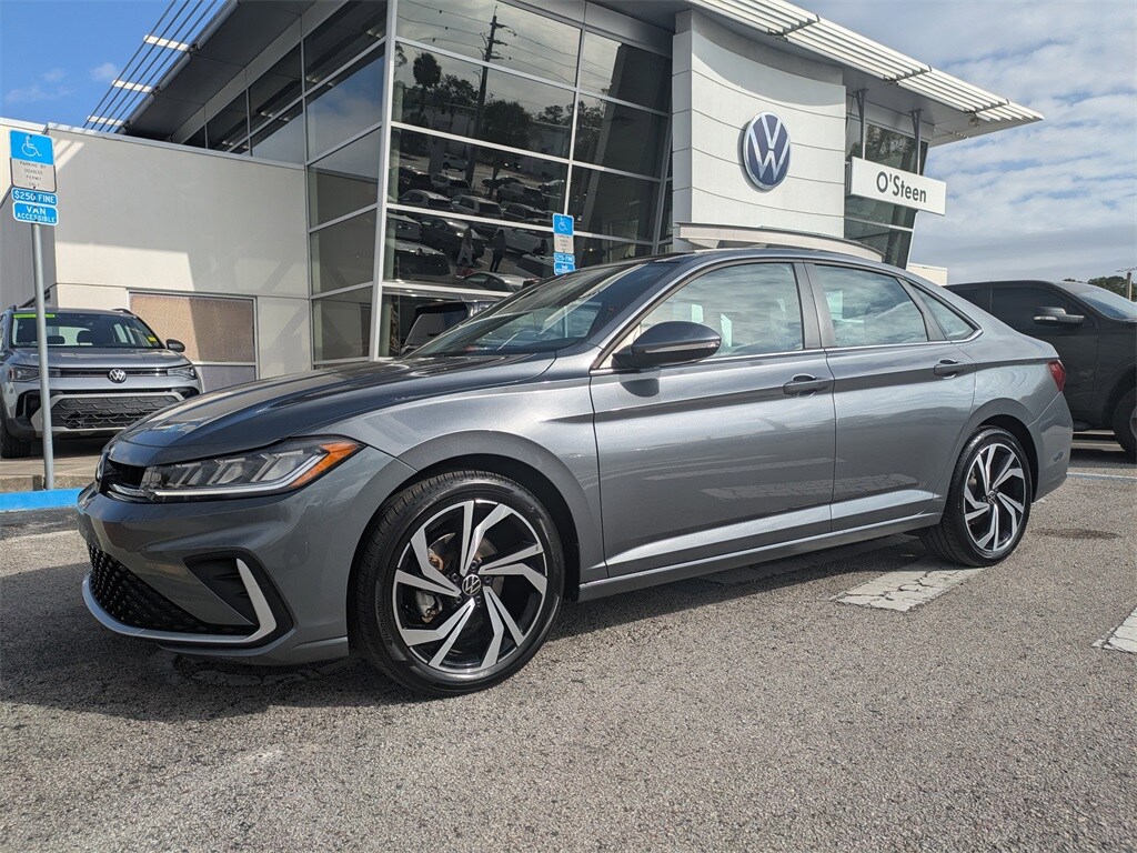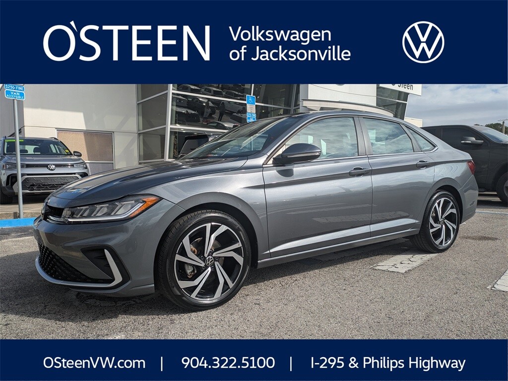 2025 Volkswagen Jetta 1.5T SEL CERTIFIED PRE-OWNED, CLEAN CARFAX, NO ACCIDENTS, ONE OWNER, Jetta 1.5T SEL, 1.5L I-4 DI DOHC Turbocharged, Platinum Gray Metallic, Titan Black w/Molekular Inserts w/Cloth Seat Trim, 6 Speakers, AM/FM radio: SiriusXM with 360L, Auto High-beam Headlights, Brake assist, Bumpers: body-color, Delay-off headlights, Electronic Stability Control, Exterior Parking Camera Rear, Front Bucket Seats, Front Center Armrest, Front dual zone A/C, Fully automatic headlights, Heated & Actively Ventilated Front Seats, Heated door mirrors, Heated front seats, Heated rear seats, Heated steering wheel, Heavy Duty Trunk Liner w/VW CarGo Blocks, Low tire pressure warning, Memory seat, Navigation System, Outside temperature display, Power door mirrors, Power driver seat, Power moonroof: Panoramic, Power steering, Power windows, Radio data system, Radio: MIB3 Discover Media w/8" Touchscreen Nav, Rain sensing wipers, Rear seat center armrest, Remote keyless entry, Sound System Substitution Credit, Speed control, Speed-sensing steering, Split folding rear seat, Steering wheel mounted audio controls, Traction control, Turn signal indicator mirrors, Ventilated front seats, Vienna Leather Seat Trim, VW Care, Wheels: 18" 2-Tone Machined Alloy.