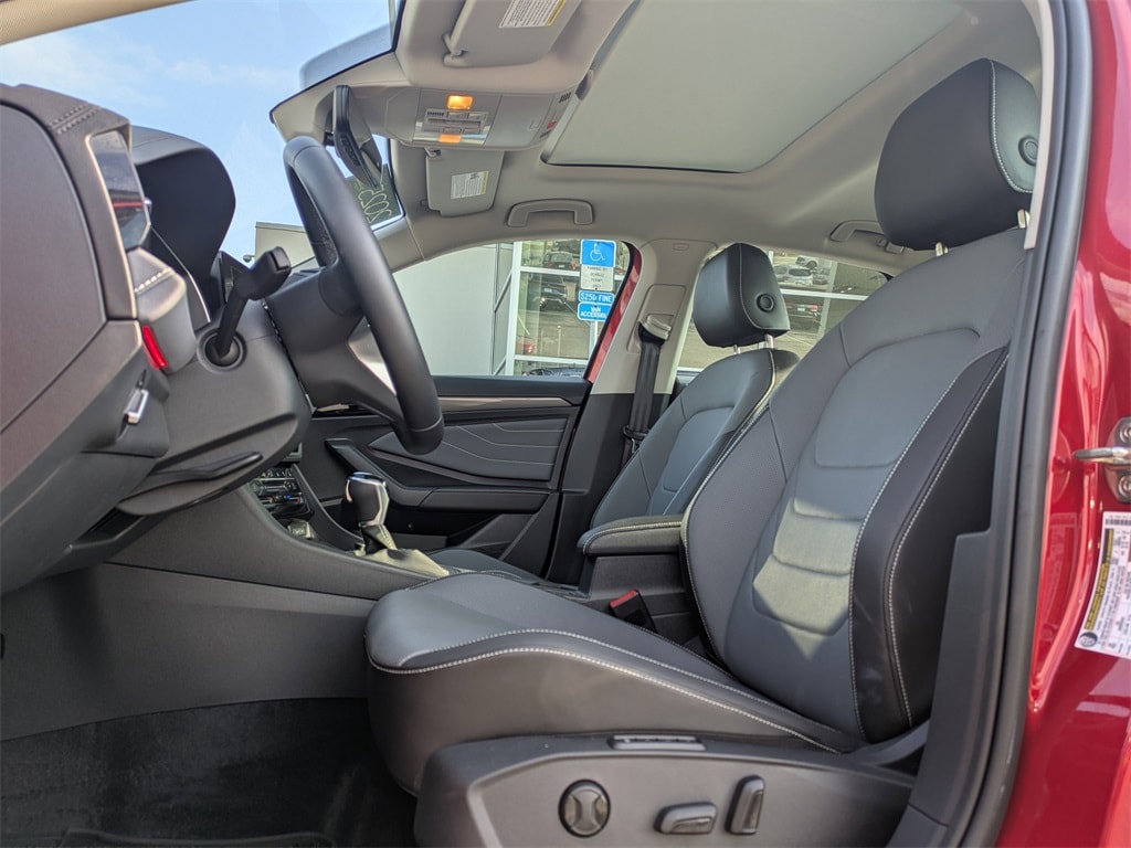 2025 Volkswagen Jetta 1.5T SEL CERTIFIED PRE-OWNED, CLEAN CARFAX, NO ACCIDENTS, STILL UNDER FACTORY WARRANTY, NON SMOKER, Jetta 1.5T SEL, 4D Sedan, 1.5L I-4 DI DOHC Turbocharged, 8-Speed Automatic with Tiptronic, FWD, Kings Red Metallic, Black Leather, 6 Speakers, Active Blind Spot Monitor, AM/FM radio: SiriusXM with 360L, Automatic temperature control, Brake assist, Exterior Parking Camera Rear, Front dual zone A/C, Heated front seats, Heated rear seats, Leather Shift Knob, Memory seat, Navigation System, Power driver seat, Power moonroof: Panoramic, Rain sensing wipers, Remote keyless entry, Split folding rear seat, Trip computer, Variably intermittent wipers, Ventilated front seats, Vienna Leather Seat Trim.