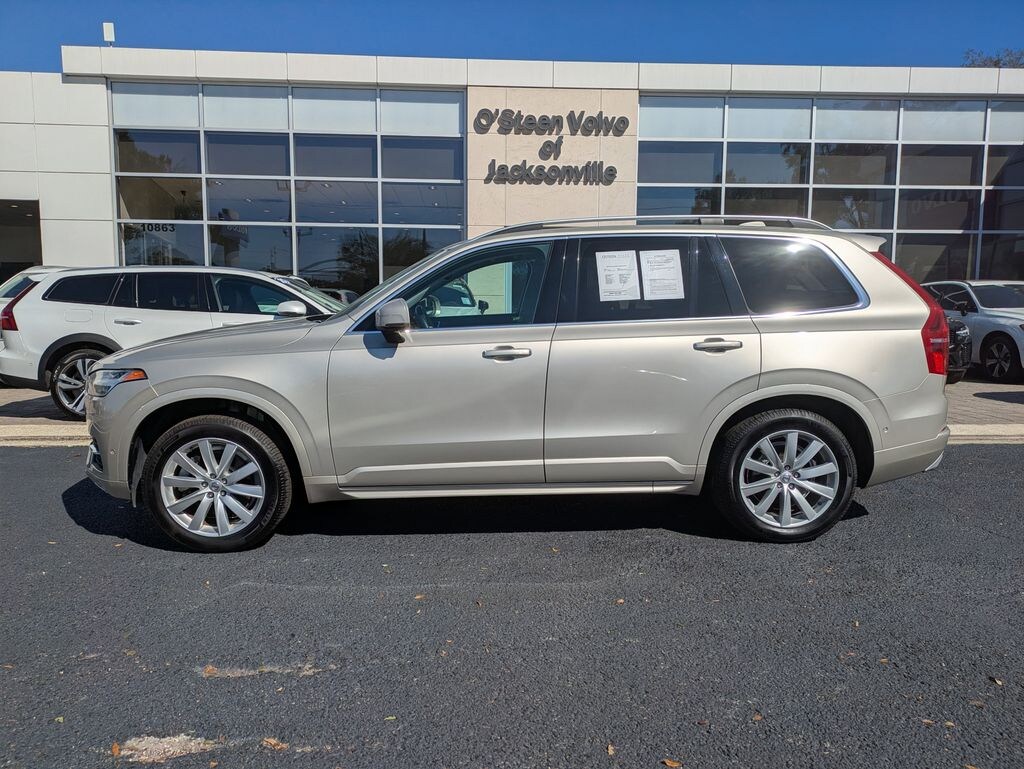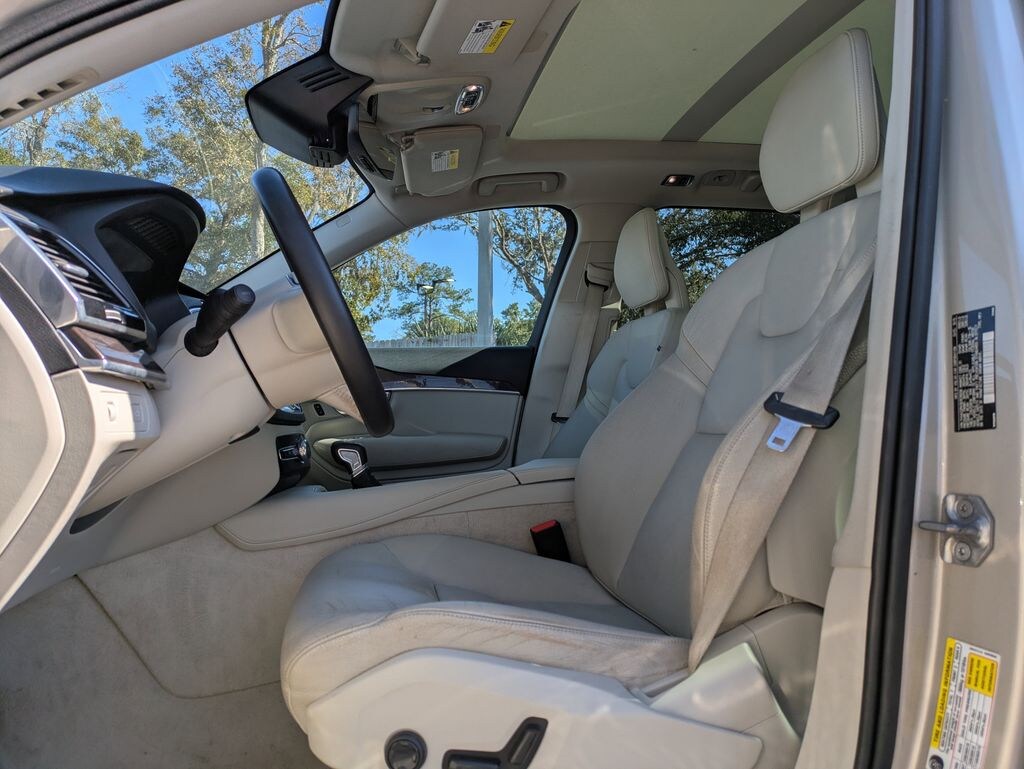 2016 Volvo XC90 T6 Momentum AWD, Blond Leather, 10 Speakers, 12V Power Outlet in Cargo Area, 4-Wheel Disc Brakes, A/V remote, ABS brakes, Adaptive Cruise Control, Air Conditioning, Alloy wheels, AM/FM radio: SiriusXM, Anti-whiplash front head restraints, Auto-dimming Rear-View mirror, Automatic temperature control, Brake assist, Bumpers: body-color, Climate Package, Convenience Package, Dark Flame Birch Wood Inlays, Delay-off headlights, Digital Compass, Driver door bin, Driver vanity mirror, Dual front impact airbags, Dual front side impact airbags, Electronic Stability Control, Emergency communication system, Exterior Parking Camera Rear, Four wheel independent suspension, Front anti-roll bar, Front Bucket Seats, Front Center Armrest w/Storage, Front dual zone A/C, Front fog lights, Front reading lights, Fully automatic headlights, Genuine wood dashboard insert, Genuine wood door panel insert, Grocery Bag Holder, Headlight High Pressure Cleaning, Heated door mirrors, Heated Rear Seats, Heated Steering Wheel, Heated Windshield, Heated Windshield Washer Nozzles, HomeLink Integrated Garage Door Opener, Illuminated entry, Illuminated Tread Plates, Interior High Level Illumination, Knee airbag, Lane Departure Warning System, Leather Seating Surfaces w/Charcoal Interior, Leather Shift Knob, LED Headlights, Low tire pressure warning, Memory seat, Momentum Plus Package, Navigation System, Occupant sensing airbag, Outside temperature display, Overhead airbag, Panic alarm, Park Assist Pilot, Passenger door bin, Passenger vanity mirror, Power door mirrors, Power driver seat, Power Liftgate, Power moonroof, Power passenger seat, Power steering, Power windows, Premium audio system: Sensus Connect, Radio data system, Radio: High Performance Audio System, Rain sensing wipers, Rear anti-roll bar, Rear fog lights, Rear Parking Sensors, Rear reading lights, Rear seat center armrest, Rear window defroster, Rear window wiper, Remote keyless entry, Roof rack: rails only, Security system, Speed control, Speed-sensing steering, Split folding rear seat, Spoiler, Steering wheel mounted audio controls, Tachometer, Telescoping steering wheel, Tilt steering wheel, Traction control, Trip computer, Turn signal indicator mirrors, Variably intermittent wipers, Wheels: 19" 10-Spoke Turbine Silver Bright, AWD, Blond Leather.